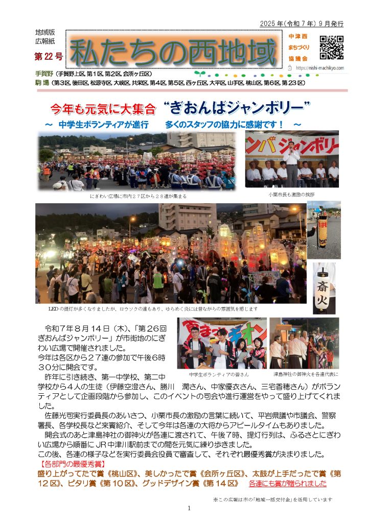 西まち協だより 2025.09.27 2025.09.17 西まち協だより 第22号(2025/09) 第21号 第20号 第19号 第18号 第17号 第16号 第15号 第14号 第13号 第12号 第11号 第10号 第9号 第8号 第7号 第6号(環境特集) 第5号 第4号 第3号 第2号 創刊号
